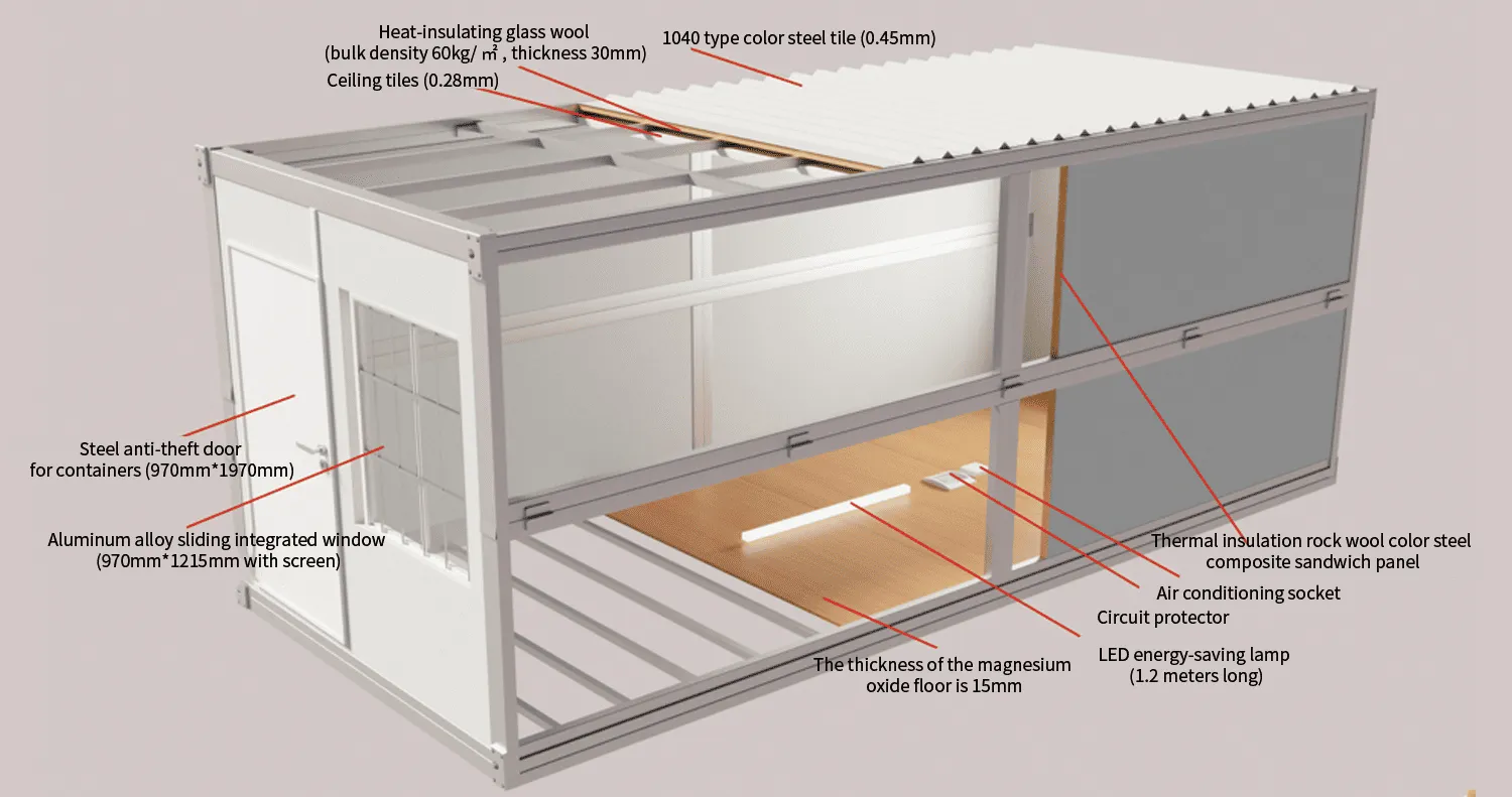 - Pre-install the wall, roof, windows, and electric system in the factory. Just plug it in and ready to use, saving more of your drawing or design time